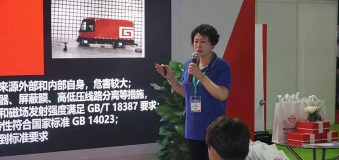 唐山客車技術副總監劉陽介紹新品